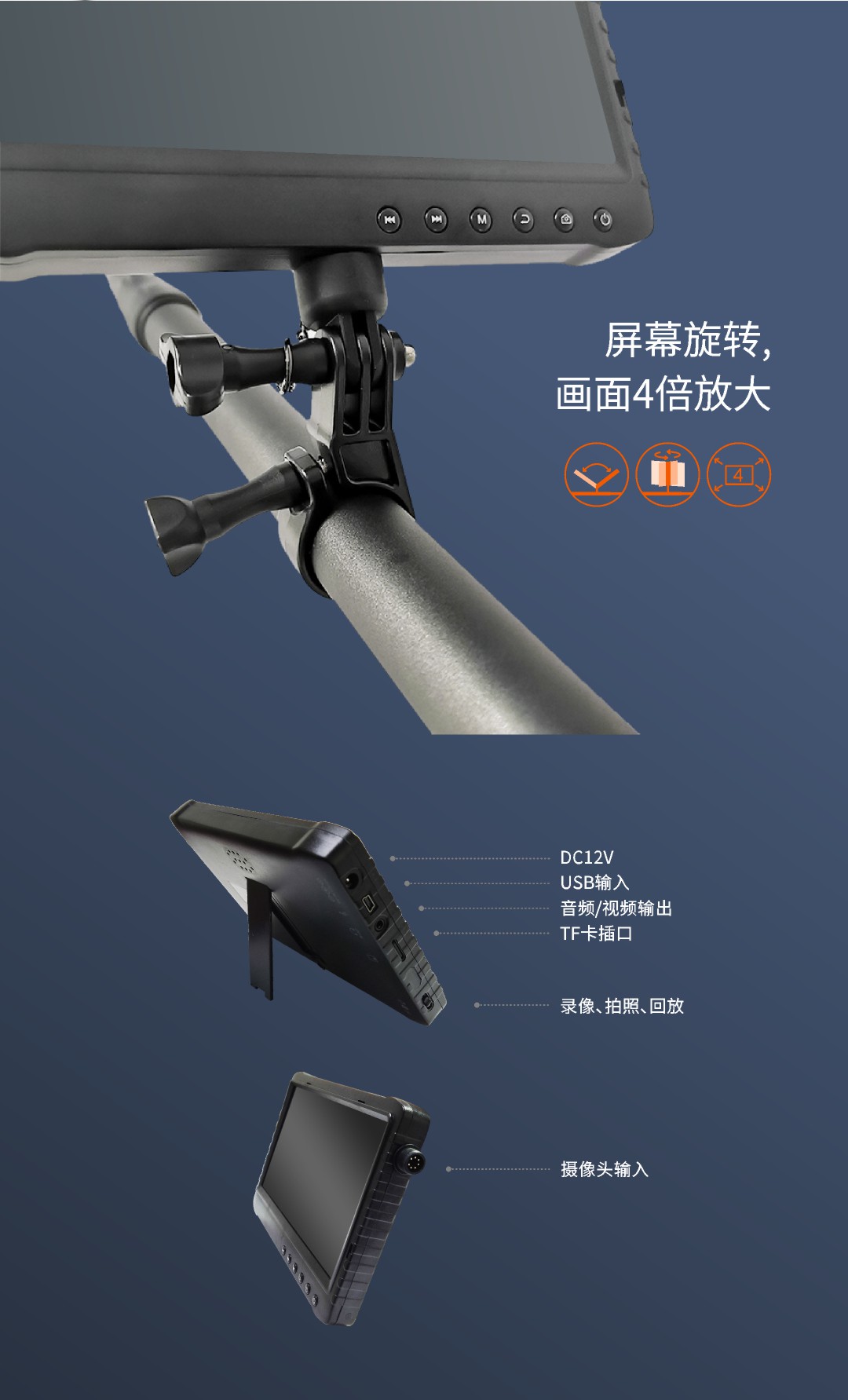 優(yōu)勢特點(diǎn):360°旋轉(zhuǎn)攝像頭;可監(jiān)聽雙向?qū)χv;可伸縮調(diào)節(jié)桿;6小時(shí)超長續(xù)航